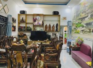 + Nhà 4 tầng xây dựng kiên cố, gồm phòng khách, bếp, phòng thờ, 4 phòng ngủ, 5 nhà wc, sân thượng trước, sau,
